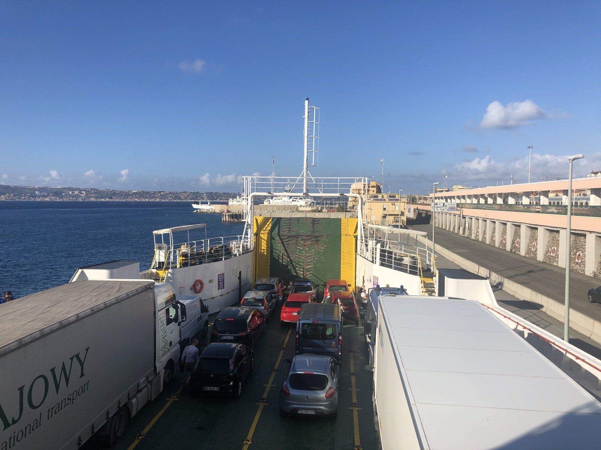 Nach 250 Kilometern auf der Insel gehts über die Strasse von Messina-diesmal allerdings mit etwas mehr Verdrängung.