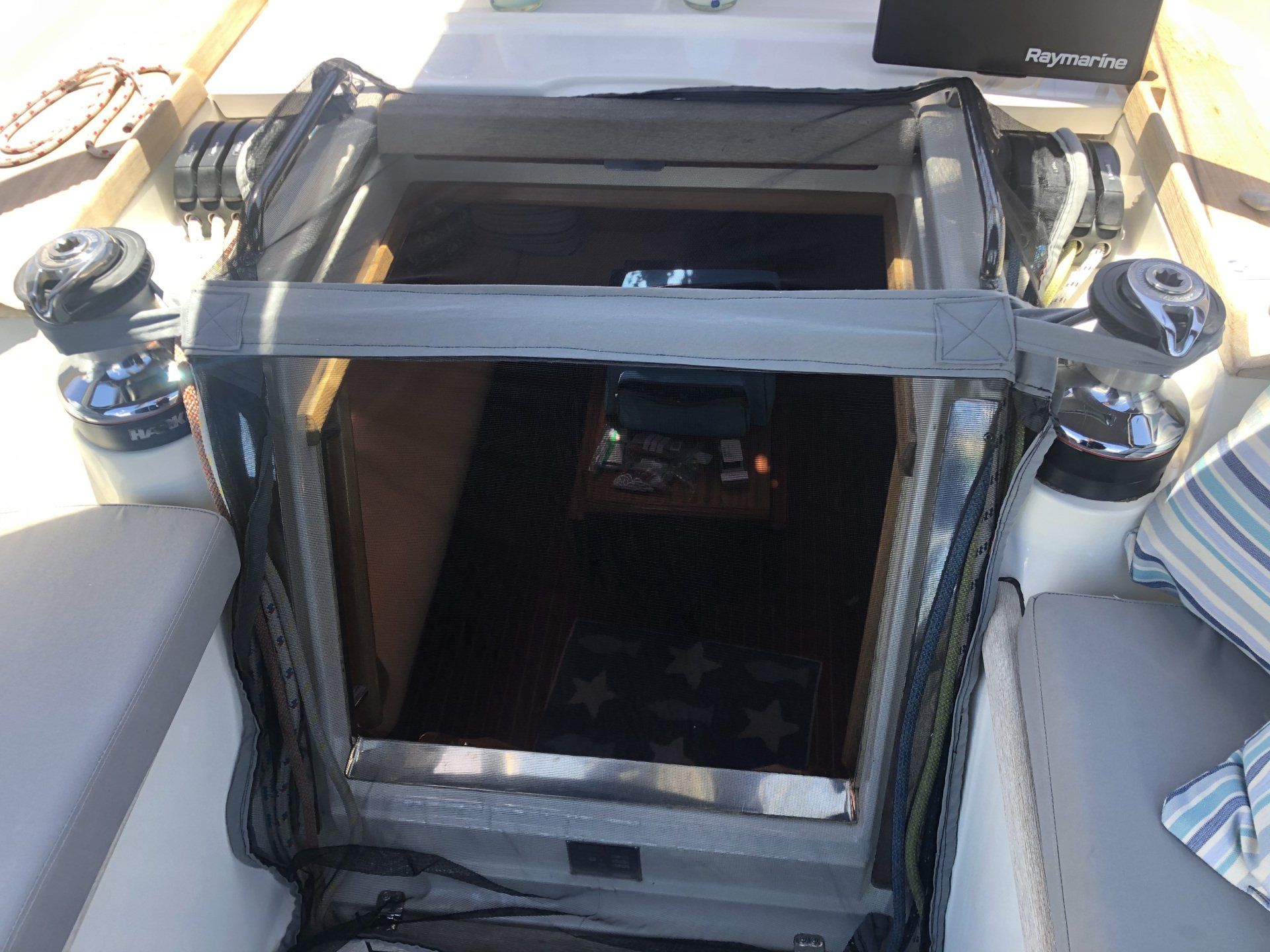 Und dann liegt sie da, die Blue Baloo, unser zuhause. Abgesehen von viel braunem Sahara-Sand, den die Winterstürme mitgebracht haben, sieht sie aus wie aus dem Ei gepellt. Grosse Freude, großes Hallo- also von unserer Seite. Elegante Zurückhaltung bei der BB…;-) Und auch im Inneren ist alles so wie wir es verlassen haben. Ich hatte etwas Bedenken und Sorge, ob nicht doch Feuchtigkeit sich breit gemacht hätte über den Winter- bei den meisten Booten ein Thema. Aber es ist alles in Ordnung, kein bisschen „Gemüffel“. Dank an die Familie Schöchl für eine gut durchlüftete und durchdachte Konstruktion.