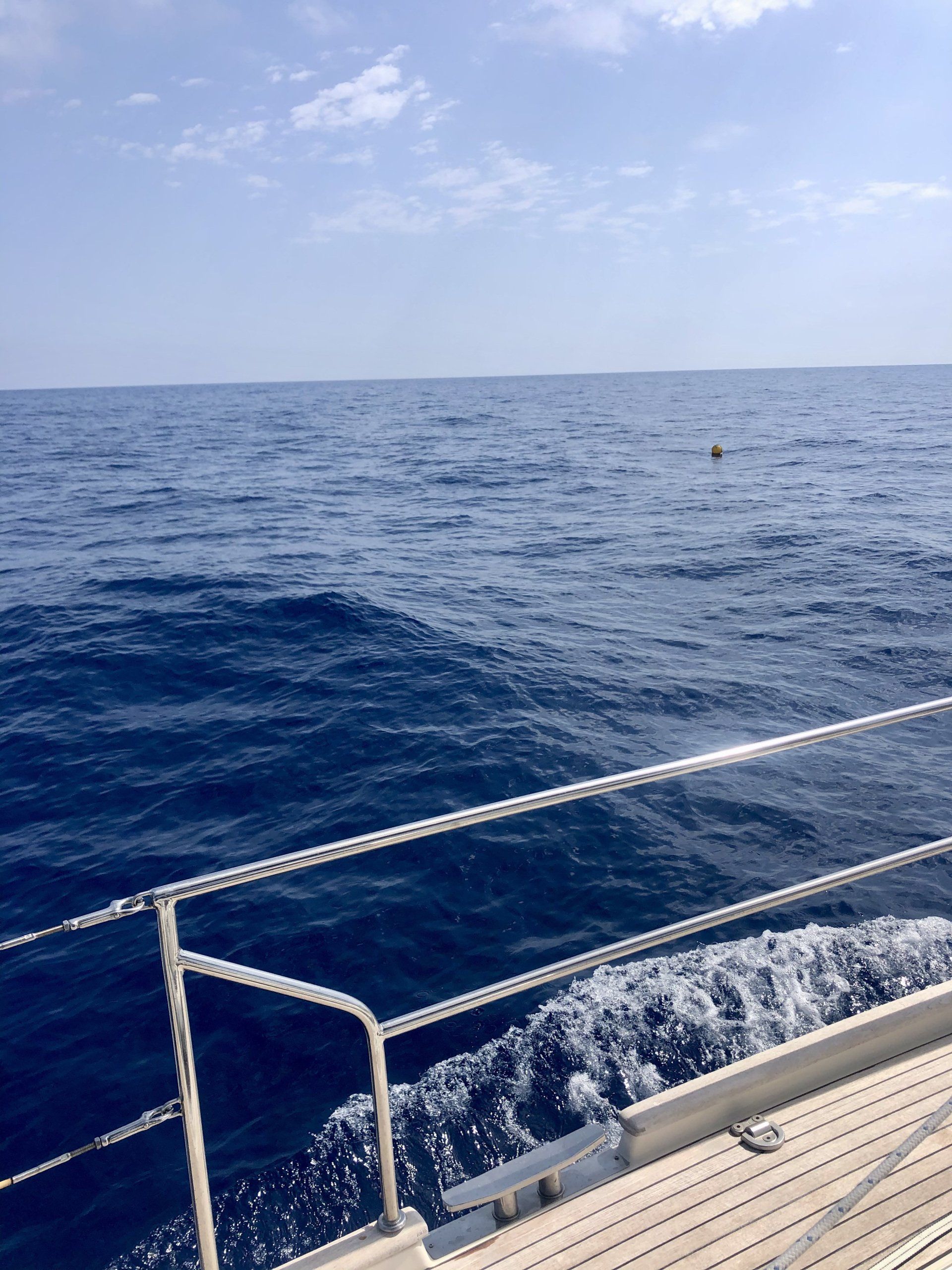 Die Welle kommt schräg von vorne. Unsere Mägen müssen sich noch ein bißchen einschaukeln. Und es ist zugegebenermaßen einfach langweilig. Wir schlafen abwechselnd, man weiß ja nie wie es weiterläuft. Es ist genau so viel zu tun, oder zu beobachten, dass man nicht wirklich etwas anderes sinnvolles tun kann. Aber das „Plotter checken“ und den „Horizont scannen“ beschäftigt einen auch nicht wirklich. Und nachdem man lange Stunden das Meer und den Horizont genossen hat, ja tatsächlich, dann wird es irgendwann auch langweilig. Da wir motoren müssen, versuchen wir möglichst schnell zu sein- dann haben wir hoffentlich hinten raus mehr Zeit auch wirklich zu segeln.
