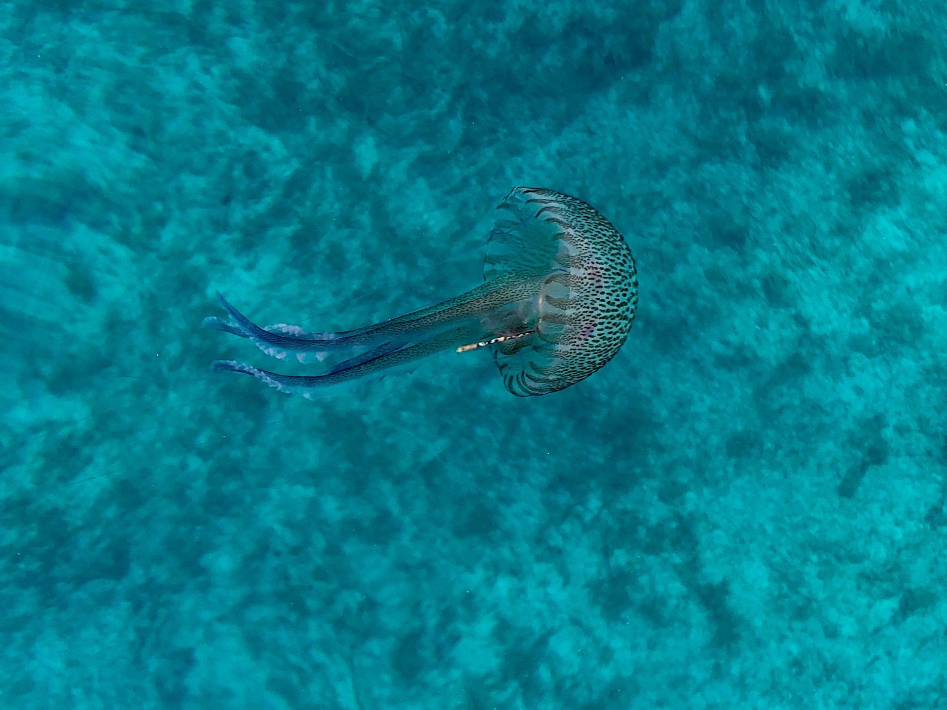 Als nach drei Tagen der Wind auffrischt bringt er leider auch ein ganz unerwünschtes Geschenk mit- die Wellen tragen eine ganze Menge Quallen in die Bucht. Faszinierend anzusehen, verderben sie einem aber doch das Badevergnügen. Wache halten von Deck aus während der andere schwimmt funktioniert auch nicht, weil die perfiden Wabbeldinger unterm Boot durchtauchen und plötzlich an der Badeleiter hochkommen. Letztes Jahr in Licata hat mich eine schmerzhaft am Bein erwischt – seitdem mache ich erst recht einen großen Bogen um diese Tierchen, bzw. bleibe auch mal dem Wasser fern.