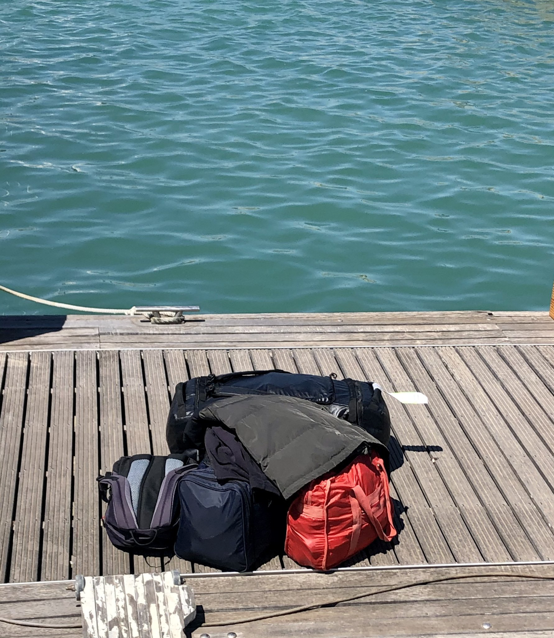 Erste Aufgabe aus dem Ordner: Sicherheitsausstattung prüfen, auf Vollständigkeit und Funktion. Also heraus mit Schwimmwesten, Rettungsbojen, Sicherheitsleitern, Rettungssegel, Seeanker, Epirb etc. Da muss zum Beispiel auch überall der Name unseres Bootes drauf. Jedes Feature zu erklären würde den Rahmen hier sprengen- es sei so viel gesagt: Wir haben alles was auf der Liste steht und noch viel mehr.