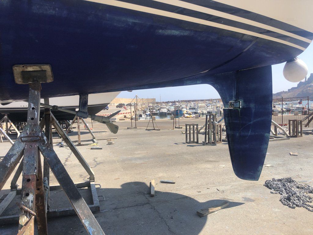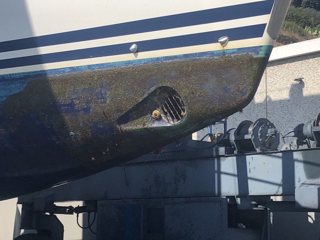 Aber gut, wir sind ja nicht nur zum Spaß hier. Die Blue Baloo braucht dringend etwas Schönheitspflege abseits der Wasserlinie, und so kommt sie aus dem Wasser um den Unterwasseranstrich zu erneuern. Die Gute hat einen hübschen Bart bekommen und der muss ab. Jetzt könnte man sagen- das sieht ja keiner unter Wasser. Zum einen ist wie bei so vielen Sachen – man selber weiß es ja leider, zum anderen kostet das Geschwindigkeit und zwar nicht zu knapp. Da wir als Segelboot in mittlerer Größe ja eh im guten Joggingtempo unterwegs sind, können wir wirklich keine versteckte Bremse gebrauchen.