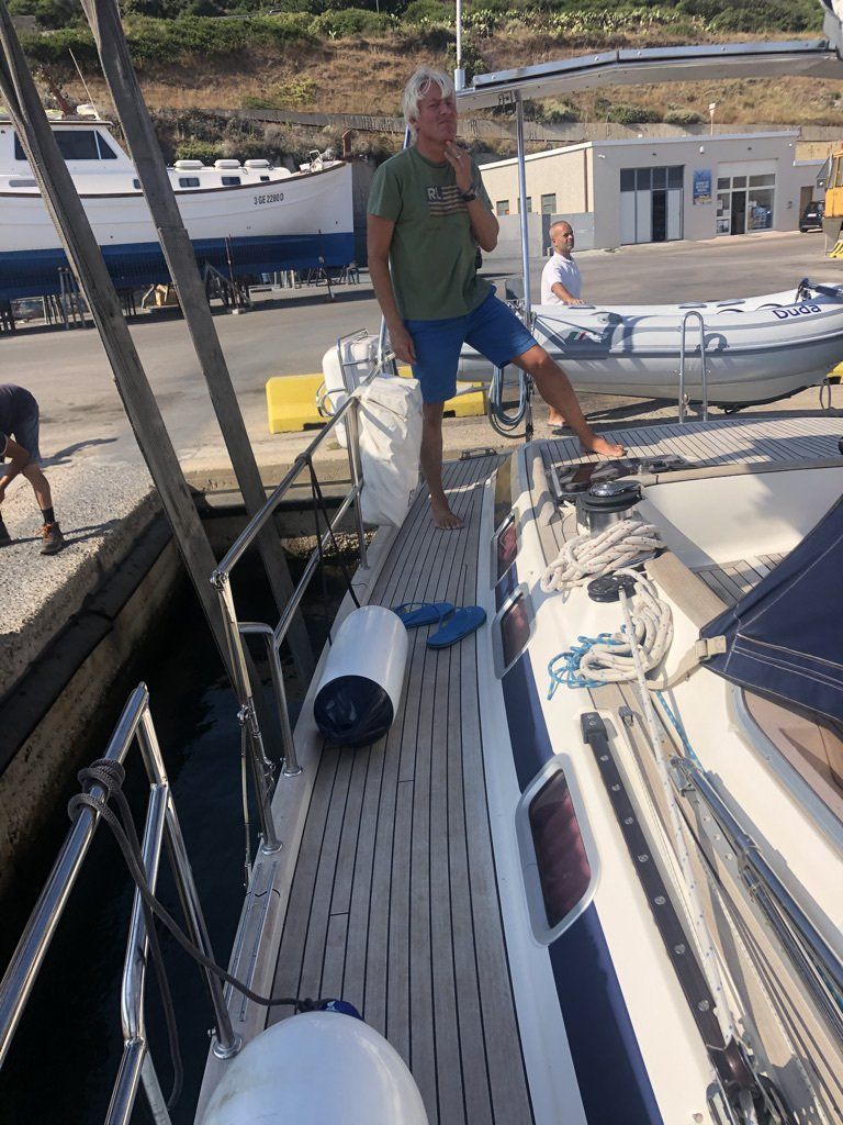 Und wir merken es ganz konkret. Man stelle sich eine Box vor, ca. 4 Meter mal 3 Meter, mit 1,90 Deckenhöhe. Außen Holzbeplankung. Die stellen wir jetzt bei 40 Grad ein paar Stunden in die Sonne. Und dann gehen wir nachts darin schlafen. Hört sich schwierig an? Willkommen in unserer Achterkajüte, normaldeutsch unser schwimmendes Schlafzimmer.. Am Ankerplatz ist immer etwas Brise. Hier in der gut geschützten Marina wie eben erwähnt- nichts. Deshalb ziehen wir los und kaufen uns eine portable Klimaanlage. Der Wahnsinn, was für ein Unterschied. Halbwegs kühle Nächte, in denen man wieder wirklich gut schlafen kann. Toll. Und die Klima übertönt auch noch die Außengeräusche hier in der Marina. Die sind nicht ohne. Die Sarden machen gerne Spaziergänge in ihrer Marina, oder üben sich im neuen Coronasport- das schnelle Gehen zu mehreren in voller Sportbekleidung. Spät abends und auch gerne ab 5:30 morgens. Sonst ist es ja auch zu heiß. Und offenbar bleiben sie gerne an der Blue Baloo mal stehen- um laut den Namen vorzulesen, und über das Schiff zu diskutieren. Und wenn man schon mal steht, kann man sich ja in der Diskussion auch noch anderen Themen zuwenden. Freut uns ja generell- aber nicht wenn wir eigentlich noch gerne schlafen würden.