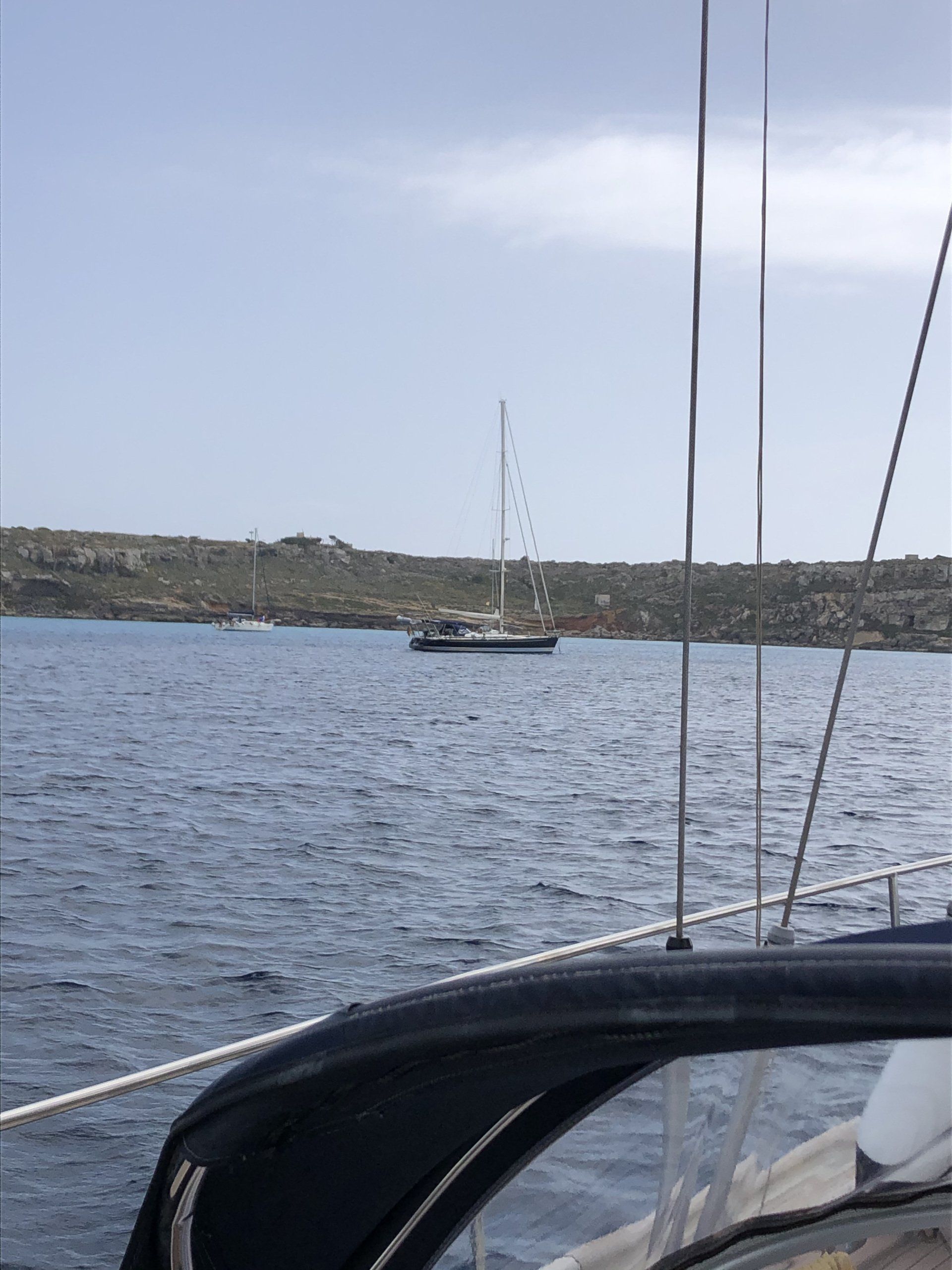 In Favignana ankern wir in der Cala Rossa – der Swimmingpoolbucht, zusammen mit Freunden aus Licata. Allerdings ist die Nacht recht wacklig, da viel Welle in die Bucht läuft. Somit starten wir bei Sonnenaufgang und verlegen uns schnell auf die Nachbarinsel Levanza.