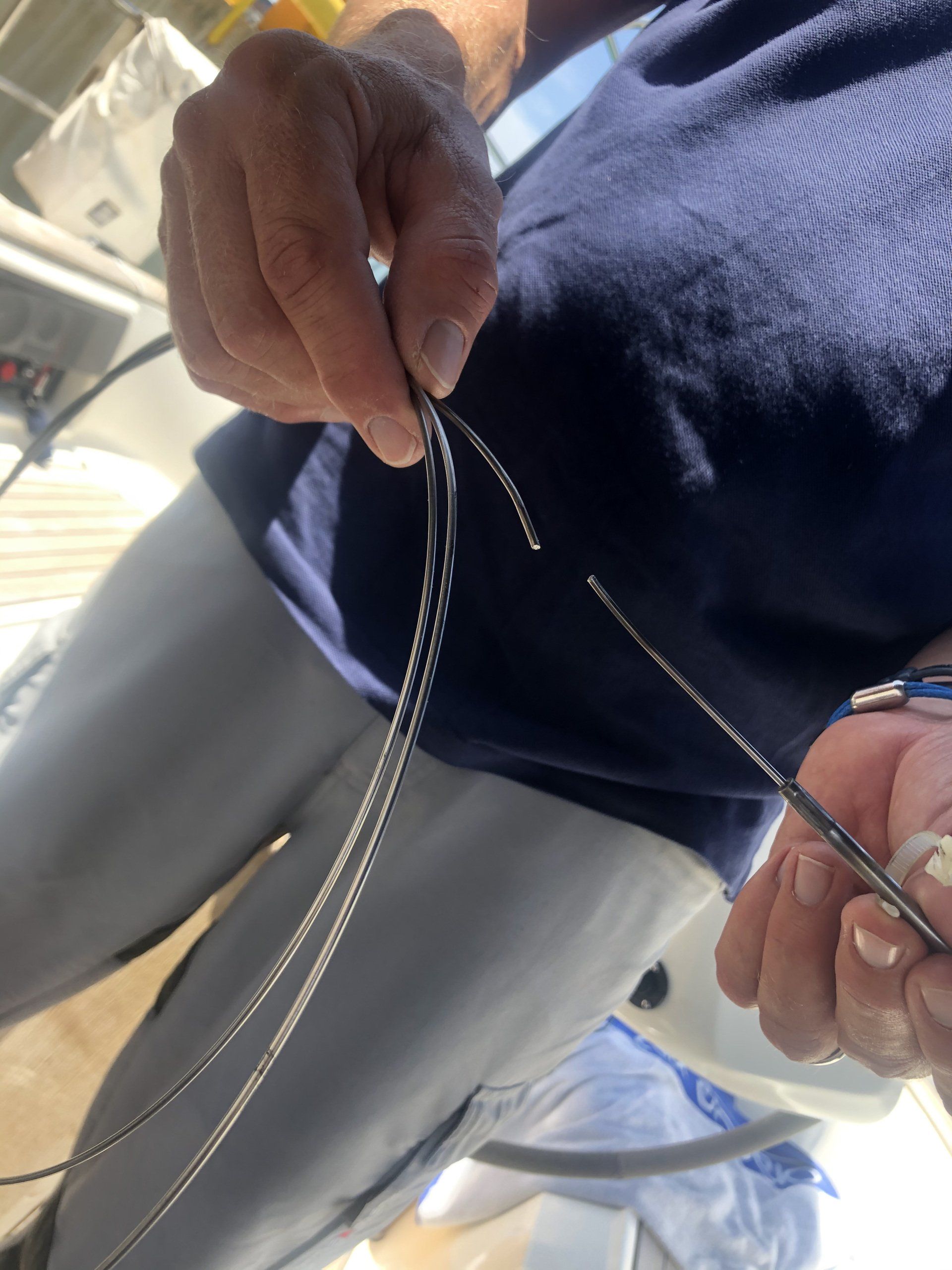Klappt aber alles gut. Und dann geht es ans Fehler suchen und ausmerzen. Tatsächlich war die Vermutung richtig, und wir bekommen einen neuen Draht für die Schubstange. Durch einen Knick (der da nicht sein sollte) ist der Draht gebrochen. Bis abends sind wir wieder flott.