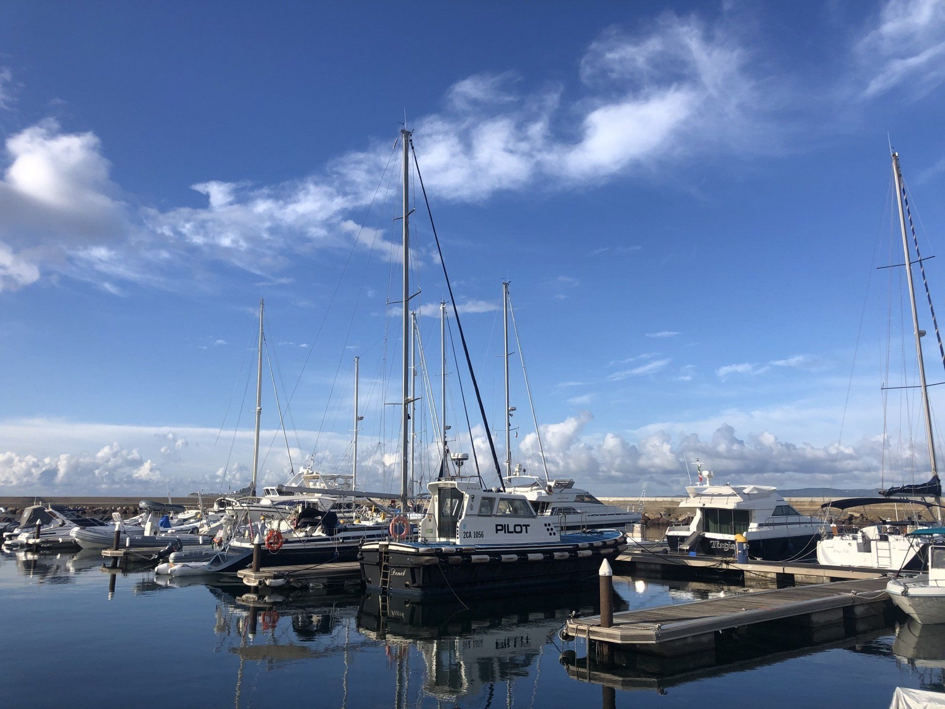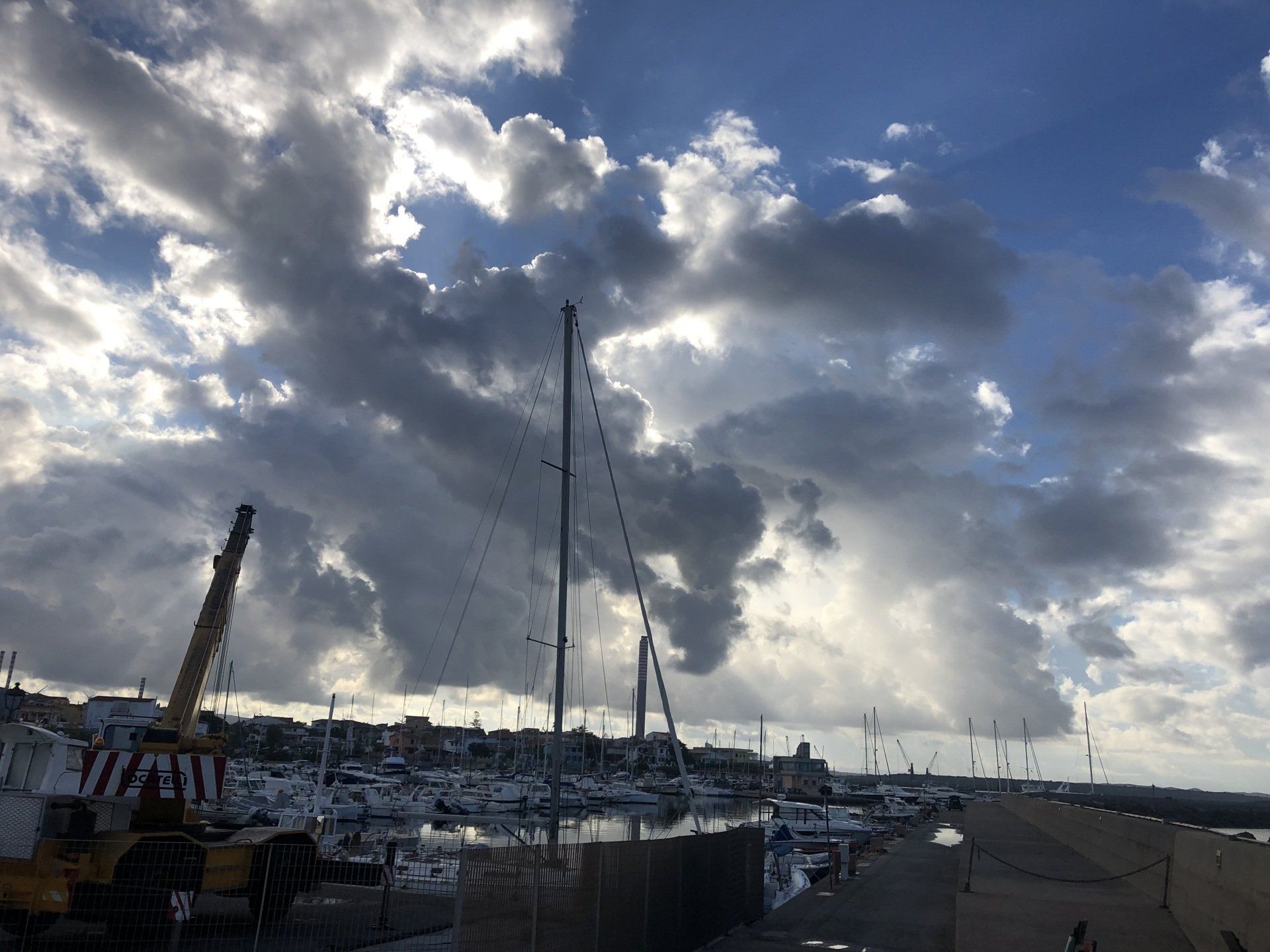 Wettertechnisch war in dieser Woche alles geboten – Sonne, Wolken, Wind, Gewitter und Regen. 47 Knoten konnte ich maximal nachts im Gewitter an Wind messen. Da surft die BB auch mit 8 Leinen in der Marina noch durch die Gegend. Spannend waren auch die irren Wolkenformationen zwischendurch. Ich verstehe leider zu wenig davon. Regen erkenne ich dagegen zuverlässig ;-).