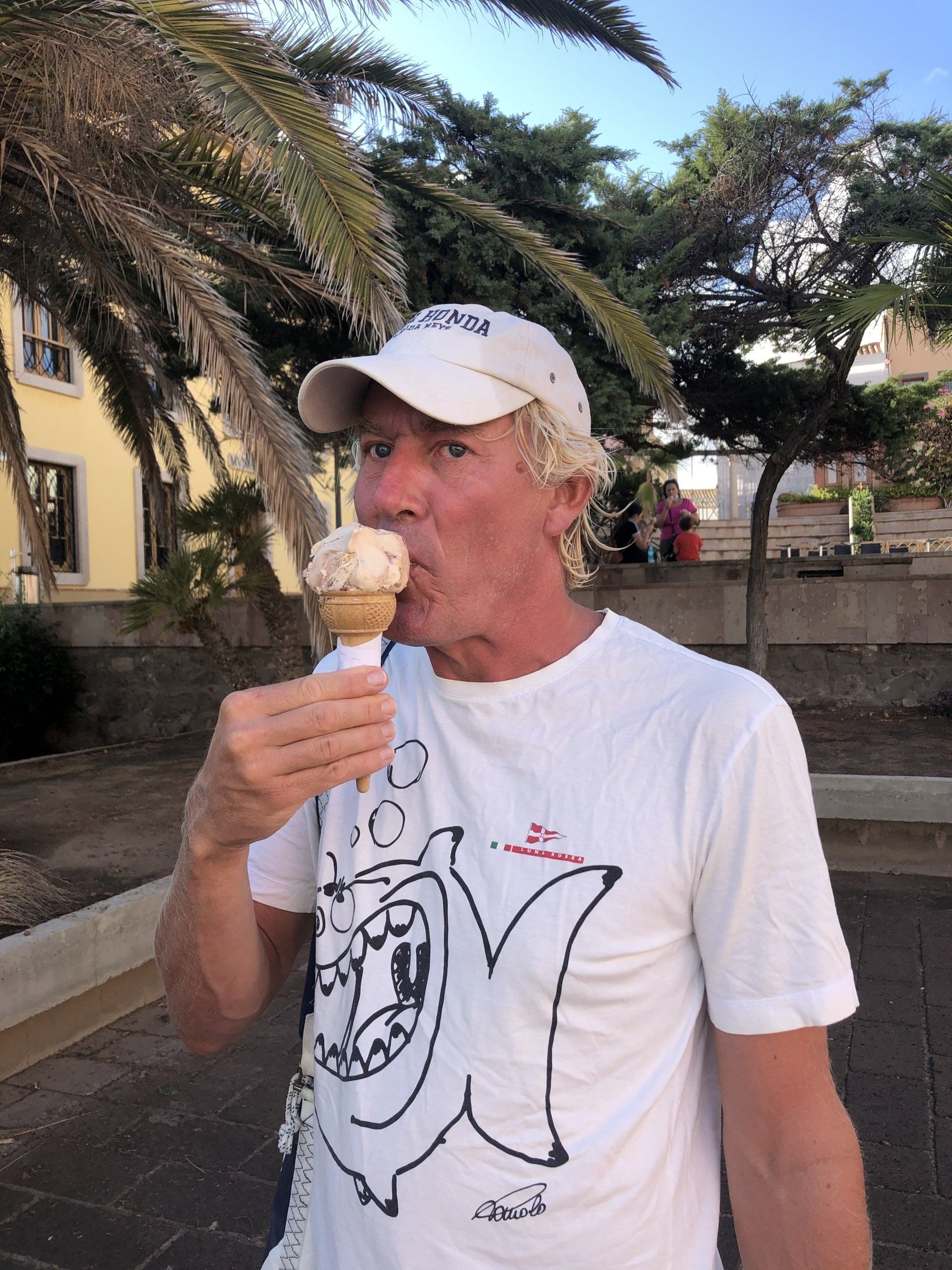 Meinen Geburtstag haben wir mit einem guten Glas an Deck und anschliessend viel frischem Fisch gefeiert. Das Su Stintru hat extra für uns den Aussenbereich geöffnet, und wir haben uns durch Meeresteller, Scampi und sardische Nachspeise geschlemmt. Sebadas oder Seadas sind sardisches Backwerk - ich tippe darauf dass eine Friteuse involviert ist- gefüllt mit einer Art Ricotta/Feta Käse, und gebadet in Honig. Genau, was Leichtes. Aber lecker.