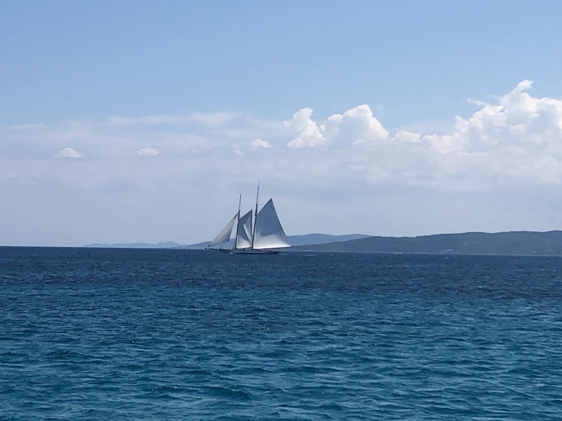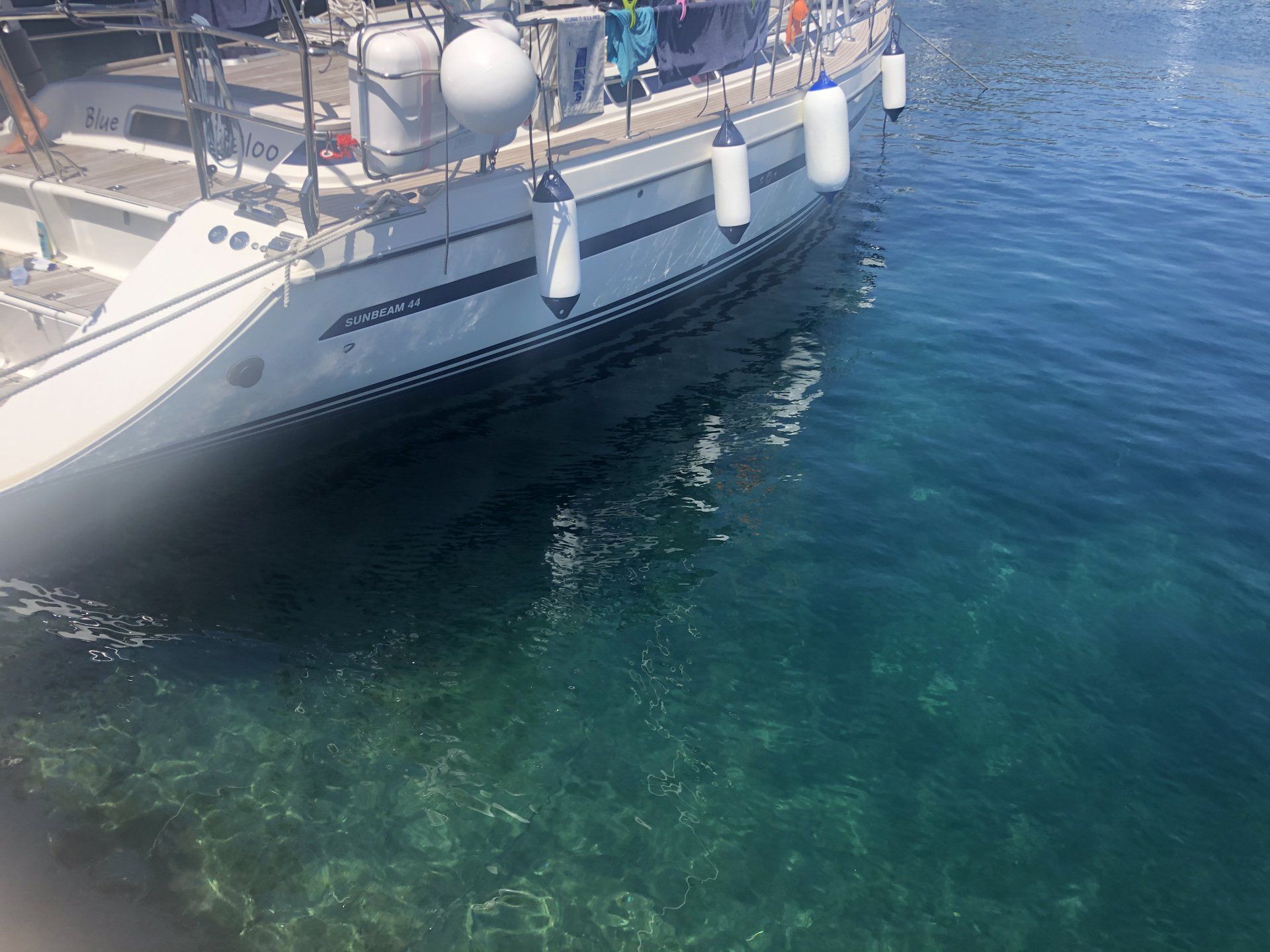 Wir ankern fast eine Woche vor Brandinchi. Der Vorteil auf dem Boot ist ja immer, dass wir nicht an den Strand müssen- wir können direkt vom Boot ins kristallklare Wasser hüpfen. Und wer da mit dabei ist, da brauchts auch keinen Mindestabstand. Oder wie es im Brandner Kaspar so schön heißt: „Der Himmel der Bayern – das ist da, wo einer aufpasst, dass keine Deppen nei kommen“. So schön und so einfach. Übrigens bayerisches Kulturgut, wunderbar im Volkstheater, aber auch sehr niedlich aktuell filmisch umgesetzt vom Bully Herbig. Genug abgewichen vom Thema.
