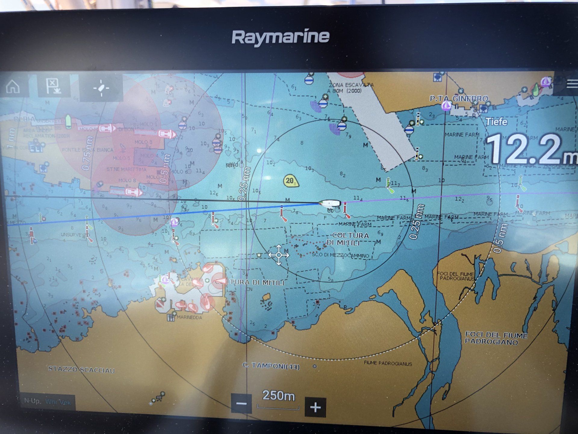 Da mal wieder Wind in rauen Mengen im Anmarsch ist sausen wir nach Olbia in die dortige Marina. Die Einfahrt nach Olbia ist spannend, ist doch die Betonnung (die Markierung innerhalb welcher mal fahren sollte) ziemlich eng. Zumindest wenn man bedenkt, dass die großen Fähren und Tanker aus dem Hafen da ebenfalls und im schlechtesten Fall gleichzeitig durchfahren. Wir haben aber Glück, und trotz permanenter sorgenvoller Blicke vor und zurück haben wir die halbstündige Einfahrt für uns alleine.
