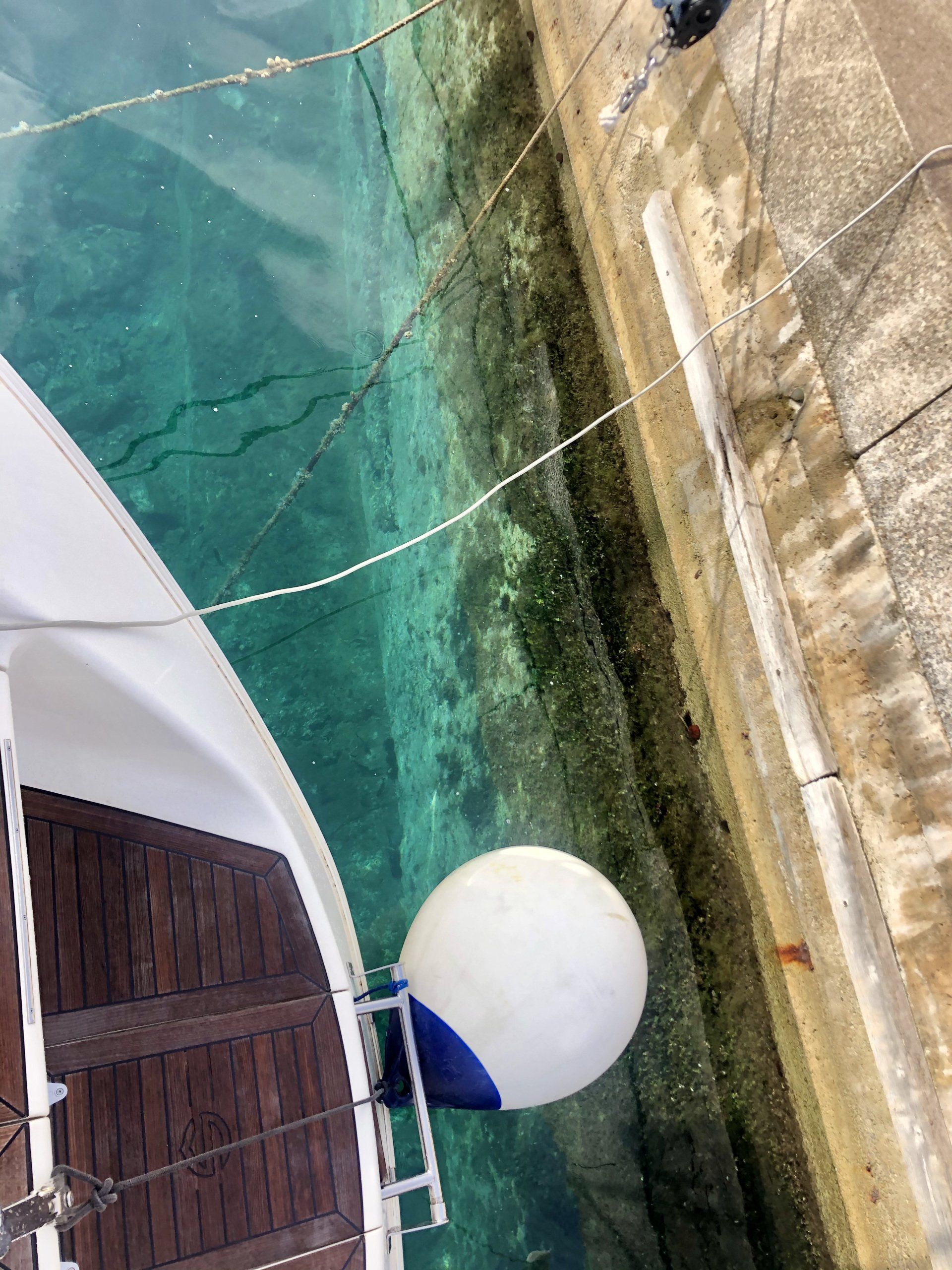Und natürlich gibt es immer was am Boot zu tun - hier ziehen wir die Logge mal wieder raus. Heisst wir nehmen einen Propfen aus dem Rumpf heraus, der ein Rädchen dran hat. Durch die Bewegung des Rädchens wenn wir fahren können wir die Bootsgeschwindigkeit ermitteln, unabhängig vom GPS. Durch kleine Muscheln wird das Rädchen immer mal wieder blockiert. Am besten rausnehmen und in Essig einweichen. Da beim Rausnehmen ein Loch im Rumpf entsteht, muss man schnell den sogenannten Blindstopfen reinsetzen. Und nach dem Einweichen selbes Prozedere wieder zurück. Bilder vom Doing selbst sind eher schwierig - hier muss es schnell gehen, um möglichst wenig Salzwasser ins Boot zu bekommen.