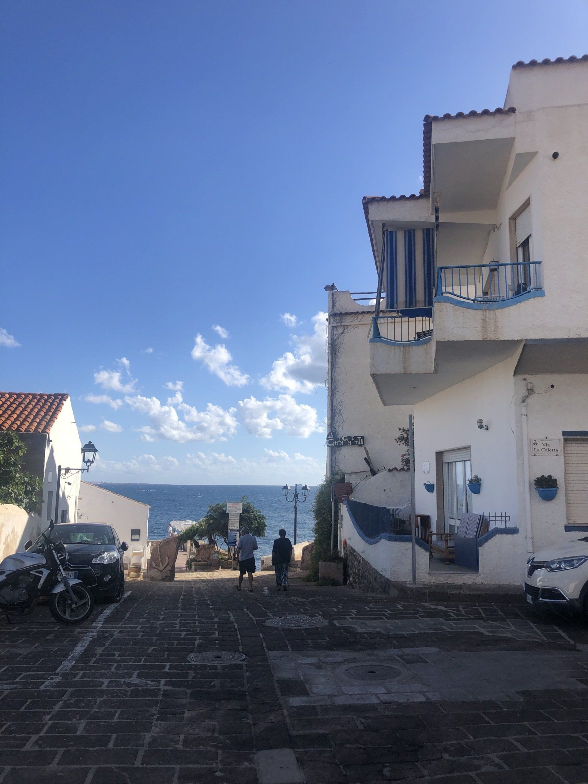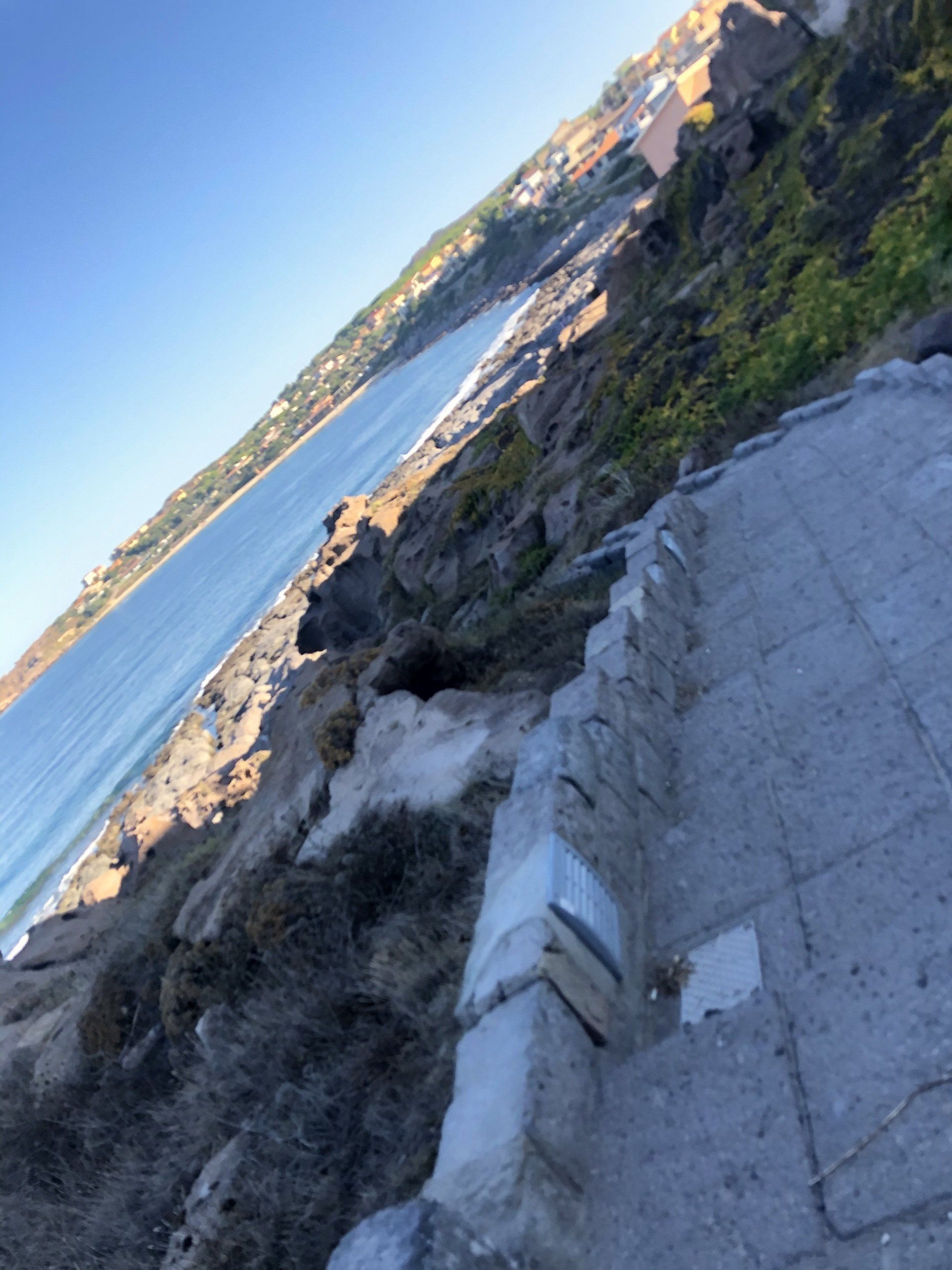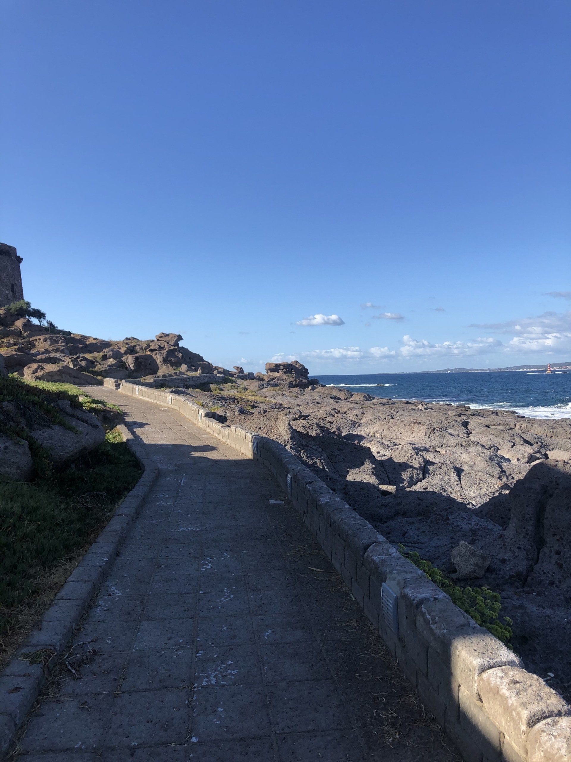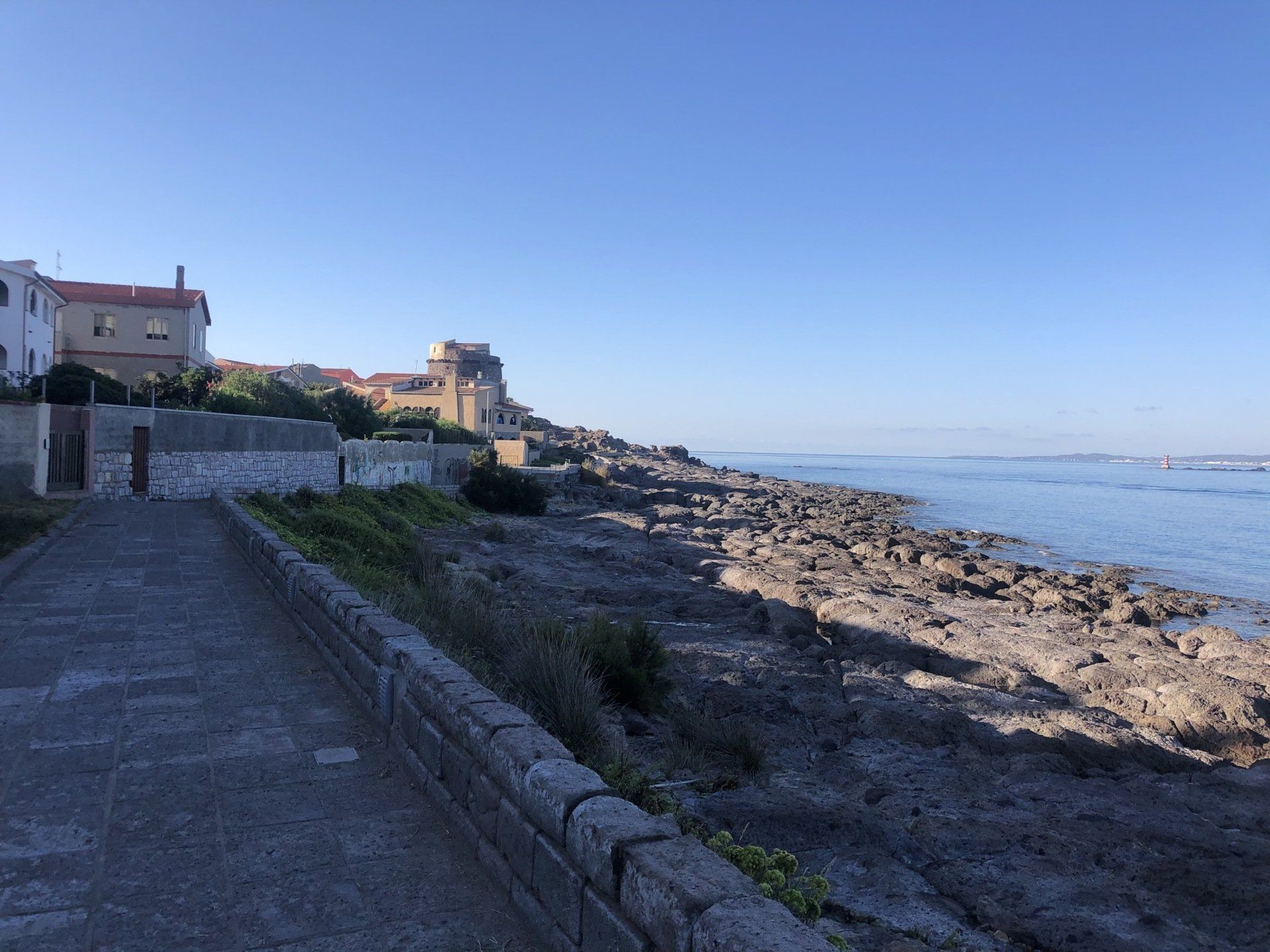 Seglerisch ist ja nichts zu berichten, also nehme ich Euch mal mit auf eine Joggingrunde durch den Ort. Eine wunderbare Möglichkeit neue Orte kenne zu lernen. Ich versuche jedes Mal etwas anders zu laufen, aber die Küste und der Strand sind immer Teil des Programms. Morgens ist es angenehmer wenn ich erst durch die Stadt laufe und am Rückweg sozusagen am Strand entlang und dann den Küstenweg um Portoscuso herum. Das bedeutet immer mal wieder Schatten und die Sonne eher von hinten als im Gesicht. Die Tatsache, dass der Ort quasi auf einem Hügel liegt führt zum einen dazu, dass es beim Laufen ständig bergauf oder bergab geht, an der Küste führt es auch noch zu unzähligen Stufen. Eine kleine Zusatzchallenge, und bei der Auswertung sehe ich auch sehr gut wie da die Geschwindigkeit abfällt – direkt proportional zu der roten Färbung meines Gesichts. Und der Teil kommt gemeinerweise auch noch direkt nach dem anstrengenderen Strandstück. Gut dass das nicht so sichtbar ist wenn man braun ist. Ein bißchen Pinienwald kommt oberhalb des Ortes auch noch und spendet nach dem Anstieg dringend benötigten Schatten. Auch hier wieder- überall wo ich vorbeikomme wird freundlich gegrüßt, die paar Autos halten extra an, um einen die Strasse queren zu lassen, die älteren Herrn in den Bars schmunzeln – ich mag die Stimmung hier wirklich sehr.