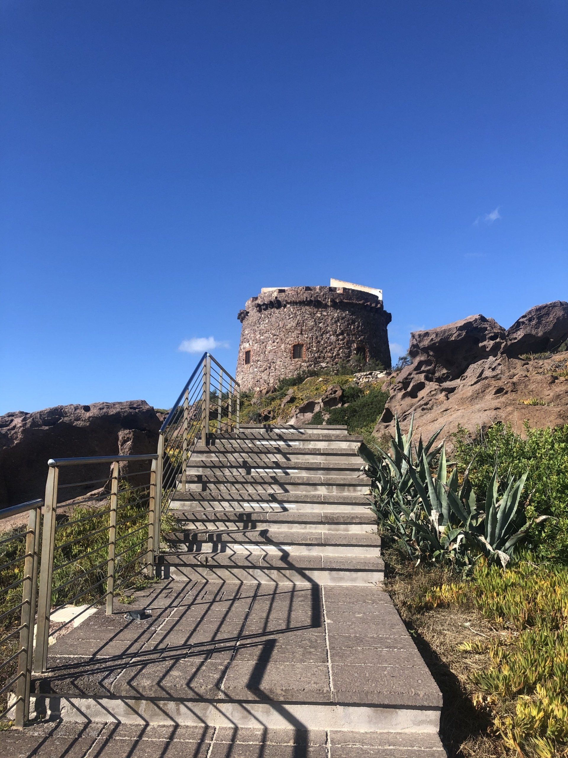 Portoscuso ist auf einen kleinen Hügel gebaut, an einem Ende ist die Marina, die vor allem Fischerboote und kleine Sportboote für den Wochenendausflug der Einheimischen beherbergt. Es gibt vielleicht 3-4 Gastliegeplätze. Somit kennt uns nach ein paar Tagen auch jeder. Am anderen Ende ist das Capo Altano, das das Ende eines sehr schönen großen Strandes anzeigt. Dazwischen sind Felsen an der Küste, mit schön angelegten Wegen und einem Turm, wie es sie häufig in Sardinien gibt. Teil eines Rings von Festungen aus dem 16. Jahrhundert.